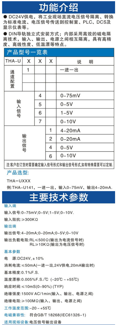 型號(hào): THA-U141,THA-U142,THA-U154,THA-U156,THA-U164,THA-U176,THA-U,信號(hào)隔離器