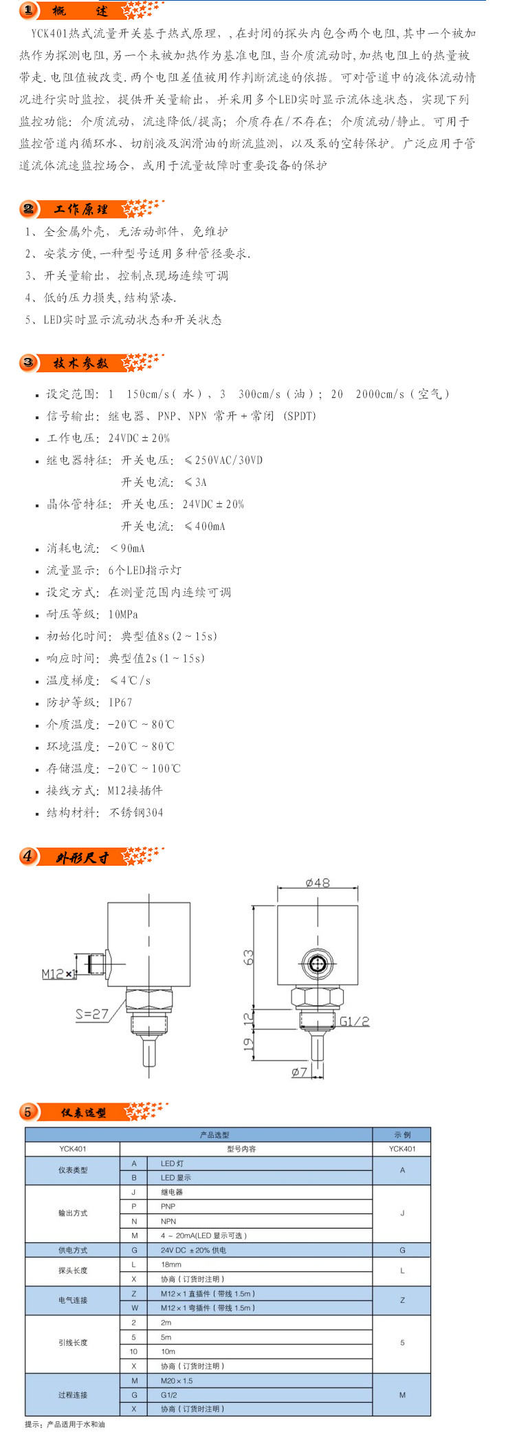 YCK401A,YCK401B,YCK401,熱式流量開關(guān)