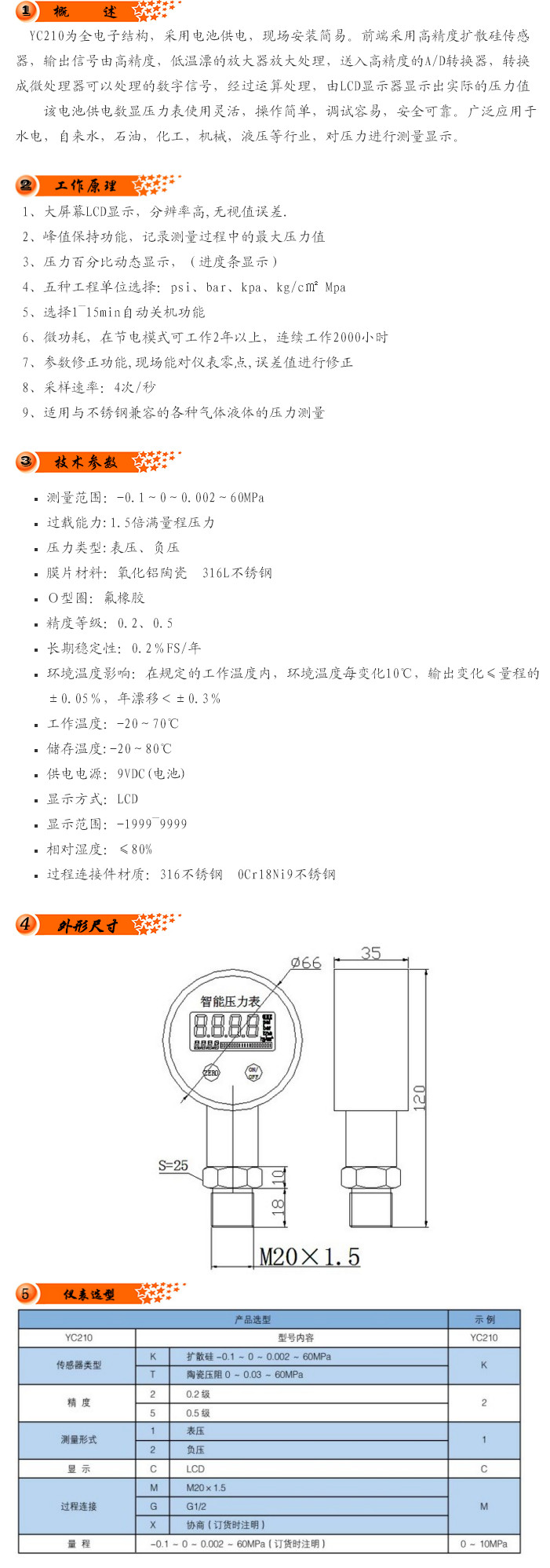 YC210K,YC210T,YC210,電池供電數(shù)顯壓力表