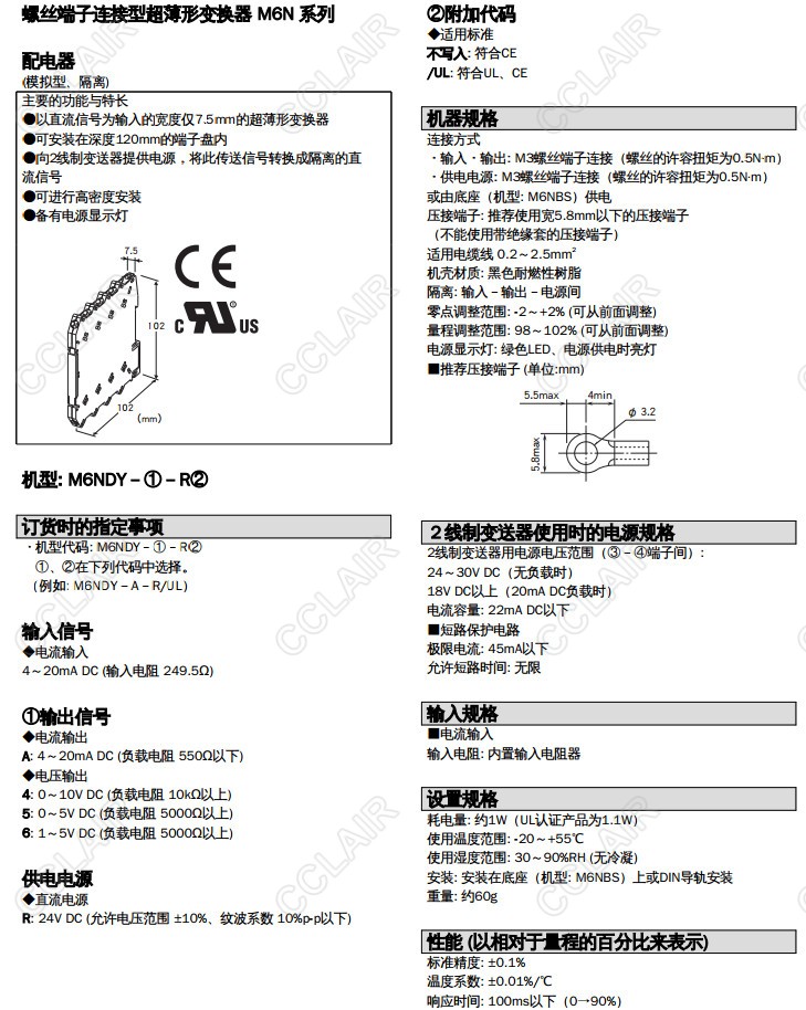 M6NDY-4-R,M6NDY-5-R,M6NDY-6-R,M6NDY-A-R,M6NDY-A-R/UL,M6NDY-4-R/UL,M6NDY,變送器