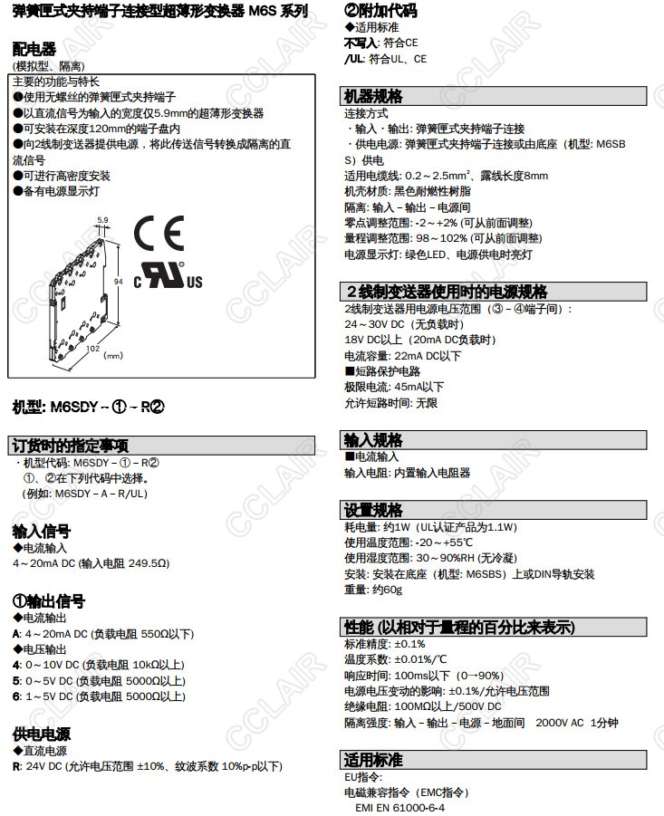 M6SDY-A-R/UL,M6SDY-4-R/UL,M6SDY-5-R/UL,M6SDY-6-R/UL,M6SDY,變送器