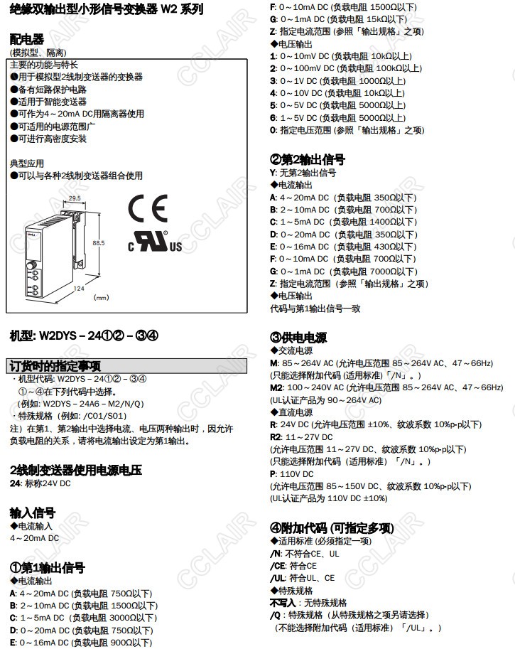 W2DYS-24AA-R,W2DYS-24A6-M2,W2DYS-24A6-M2/N,W2DYS-24A6-M2Q,W2DYS,信號(hào)隔離變換器