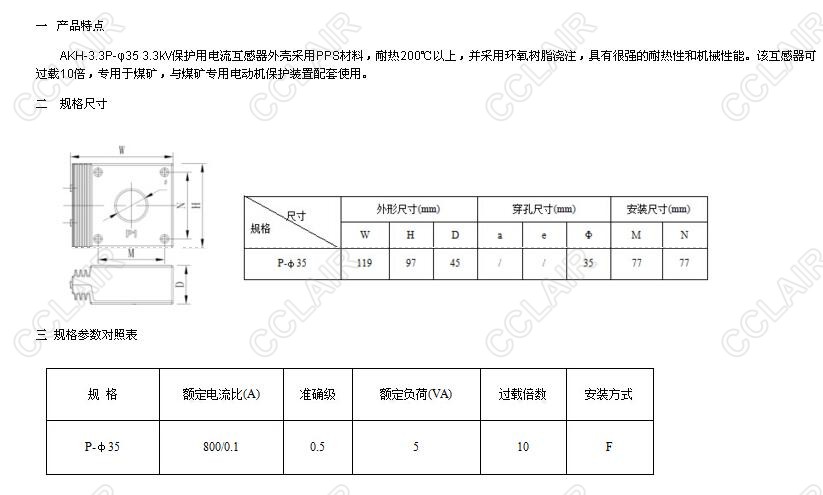 AKH-3.3P-φ35,中壓電動機(jī)保護(hù)專用電流互感器