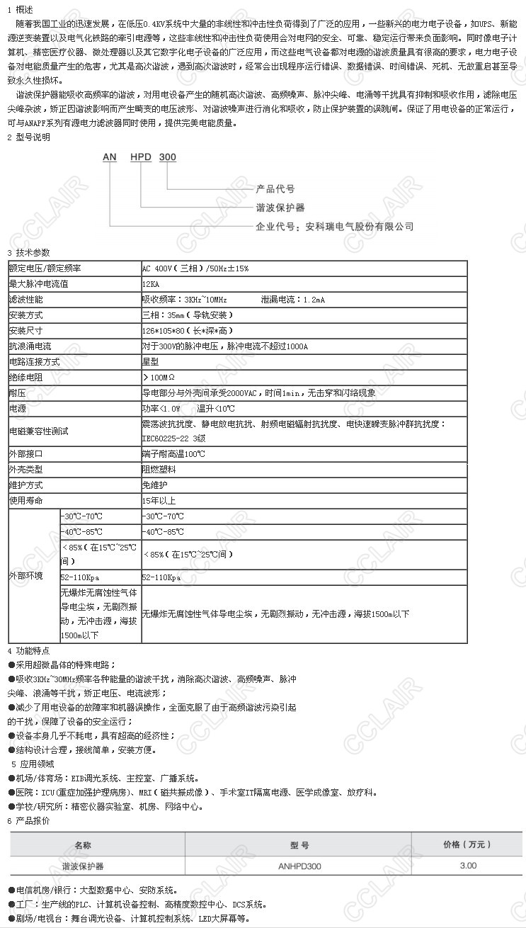 ANHPD300,諧波保護(hù)器