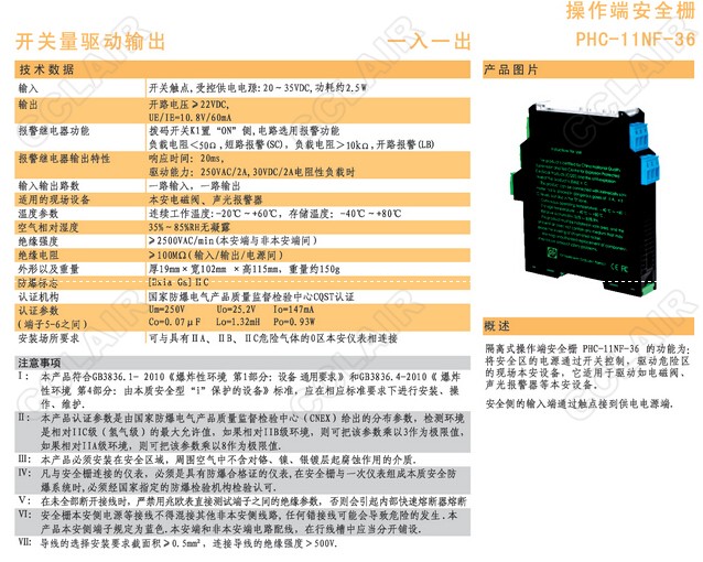 PHC-11NF-36隔離式安全柵