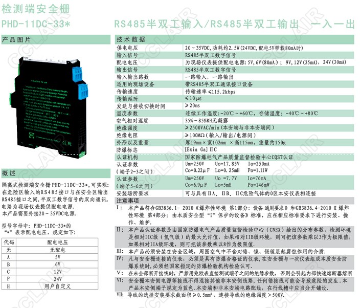 PHD-11DC-33A,PHD-11DC-33B,PHD-11DC-33C,PHD-11DC-33F,PHD-11DC-33H檢測端安全柵