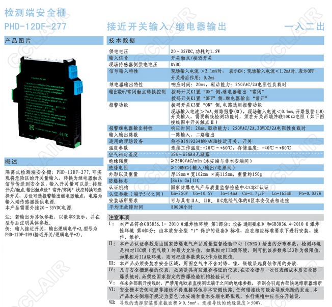 PHD-12DF-277檢測端安全柵