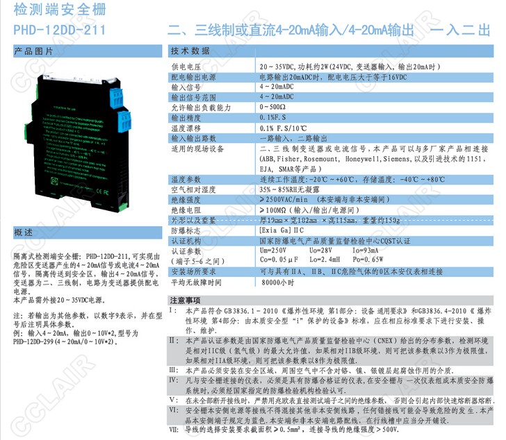 PHD-12DD-21檢測端安全柵