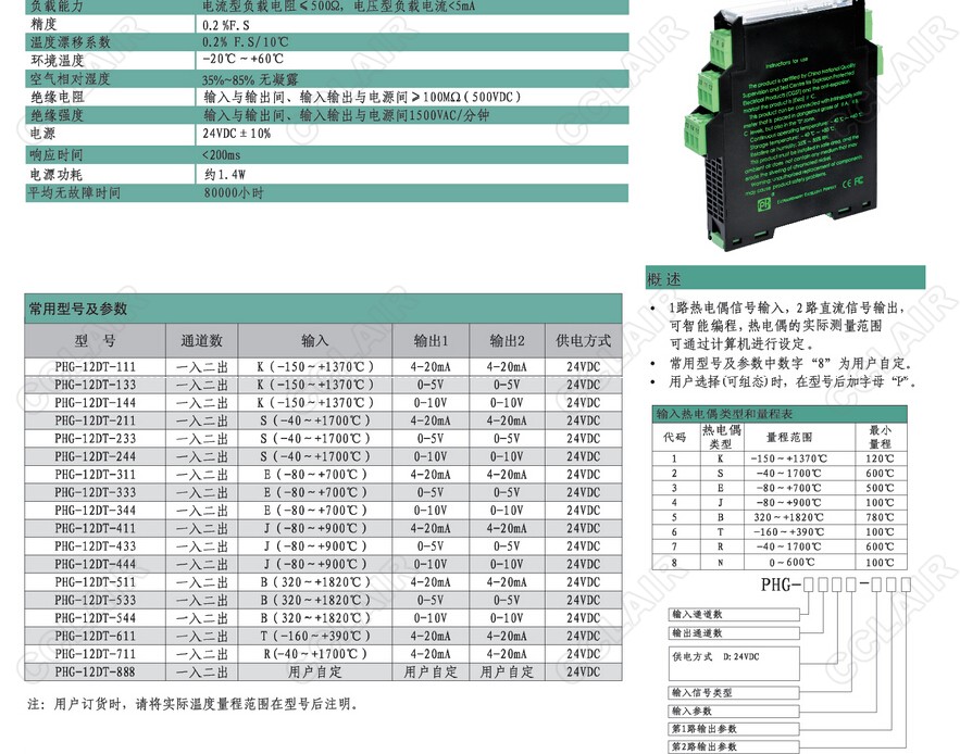 PHG-12DT-611,PHG-12DT-711,PHG-12DT-888熱電偶型信號隔離分配器