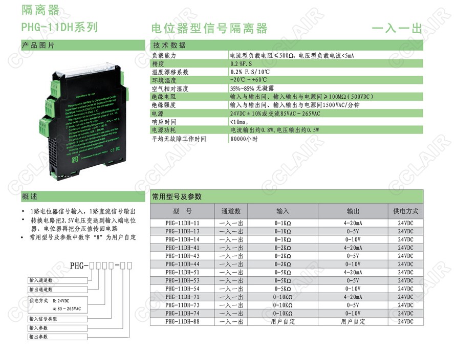 PHG-11DH-54,PHG-11DH-71,PHG-11DH-73,PHG-11DH-74,PHG-11DH-88電位器型信號隔離器