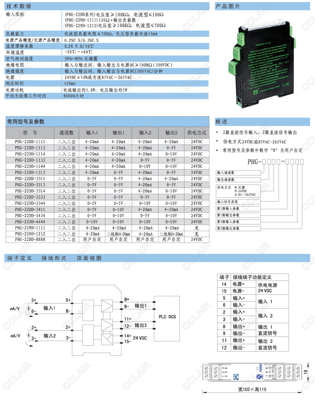 PHG-22DD-1111,PHG-22DD-1144,PHG-22DD-3411,PHG-22ND-1212,PHG-22DD,直流型信號隔離器