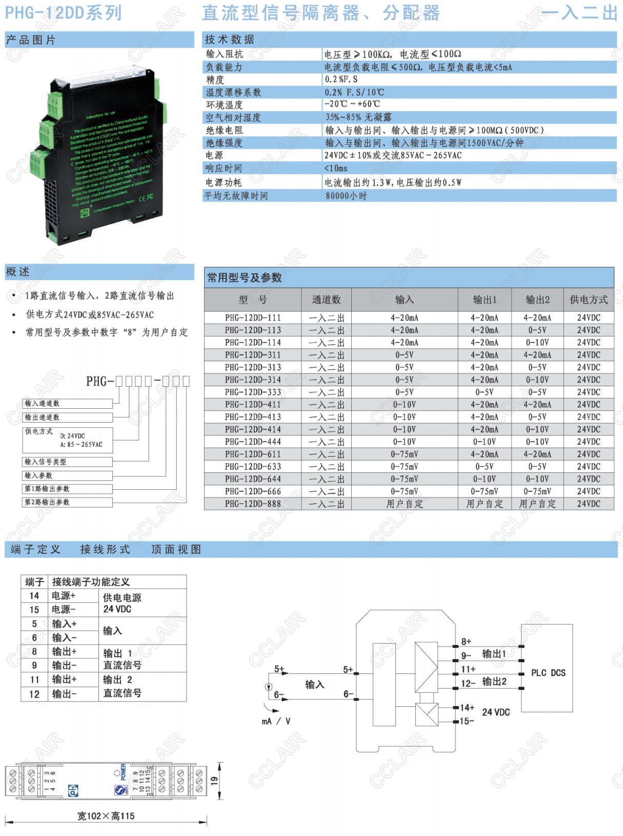 PHG-12DD-111,PHG-12DD-313,PHG-12DD-414,PHG-12DD-888,PHG-12DD,直流型信號隔離器