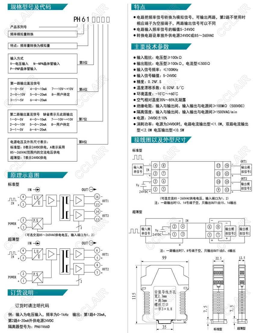 PH61V,PH61N,PH61P,PH61V66A,PH61V66D,PH-61,頻率轉(zhuǎn)模擬量隔離器