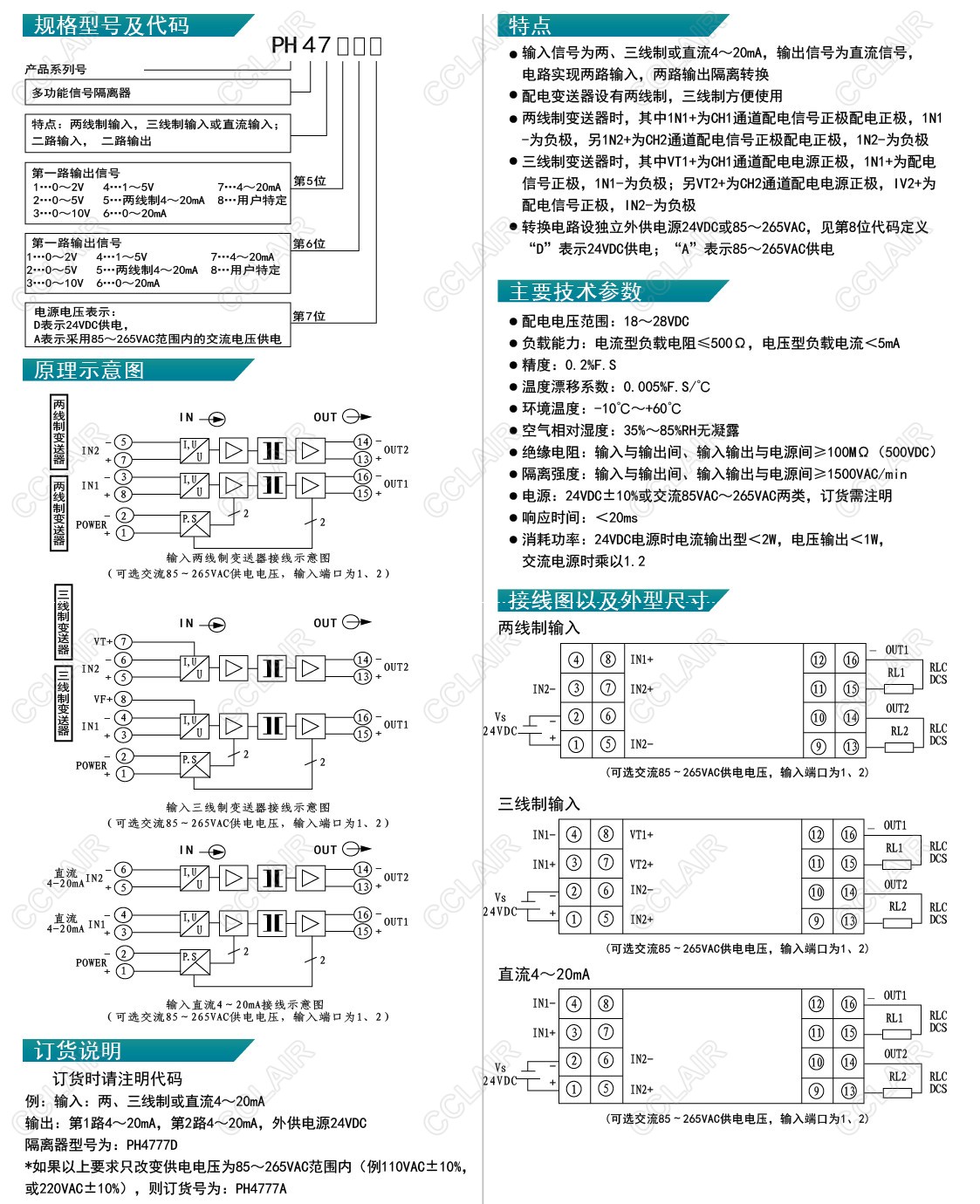PH4712D,PH4731D,PH4745A,PH4765D,PH4777A,PH4777D,PH-47,有源配電型雙通道信號(hào)隔離器