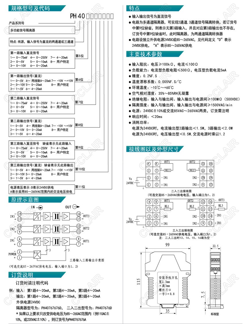 PH40767676A,PH40767676D,PH407676D,PH-40,有源直流型多通道信號隔離器