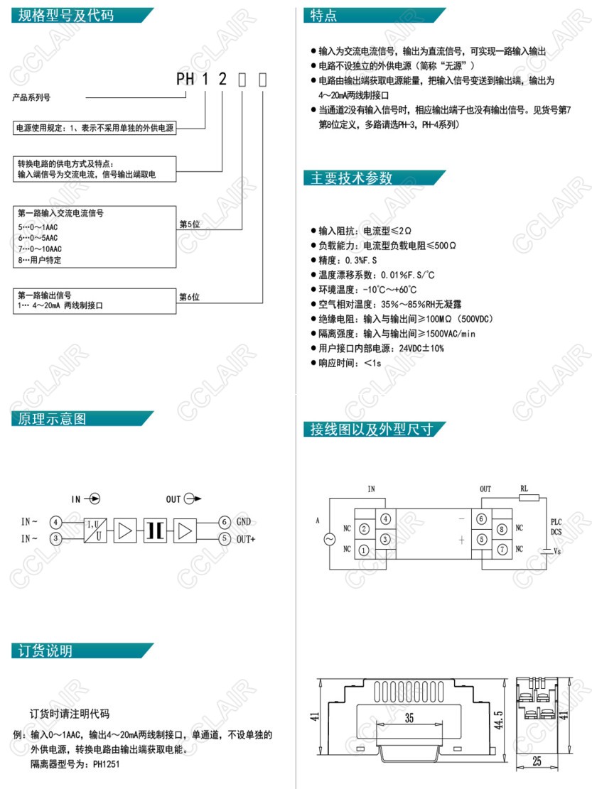 PH1251,PH1261,PH1271,PH-1251,PH-1261,PH-1271,PH-12,無源交流型信號隔離器