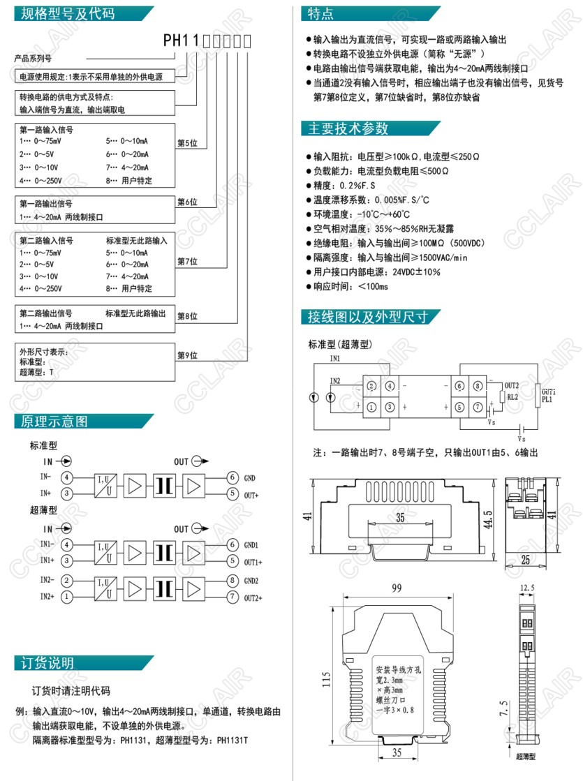 PH1111,PH1121,PH1131,PH1141,PH1151,PH1131T,PH-1131,PH-1131T,PH-11,無(wú)源直流型信號(hào)隔離器