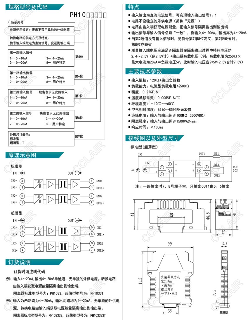 PH1033,PH103333,PH1033T,PH103333T,PH-1033,PH-103333,PH-10,無源直流電流型信號(hào)隔離器