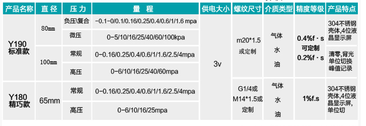 MIK-Y190數(shù)顯壓力表,內(nèi)置高精度壓力傳感器,能夠準(zhǔn)確實時顯示壓力,并且具有抗震動、顯示精度高、穩(wěn)定性高、可清零等特點。該款智能壓力表采用LCD顯示屏,具有背光、單位切換等多種功能,操作簡單,安裝簡捷。由于采用低功耗的處理器芯片,續(xù)航時間長,具有自動待機與一鍵清零功能,使用方便。改款智能數(shù)顯壓力表可以測量水、油、空氣等對不銹鋼無腐蝕的介質(zhì),適合壓力容器、自動化設(shè)備、實驗室設(shè)備配套的使用。