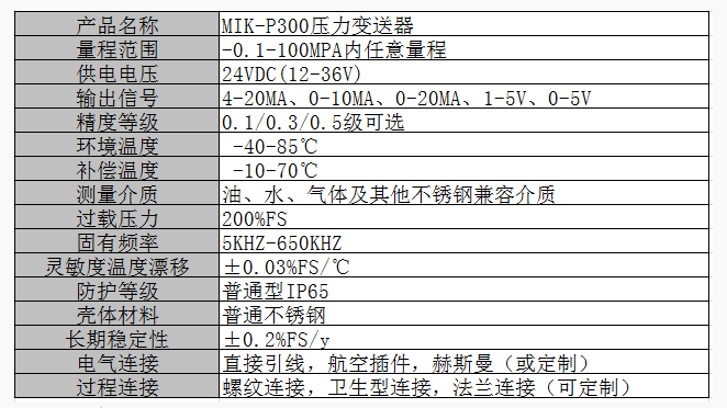 MIK-P300壓力變送器壓力敏感核心采用了高性能的硅壓阻式壓力充油芯體,內(nèi)部的專(zhuān)用集成電路將傳感器毫伏信號(hào)轉(zhuǎn)換成標(biāo)準(zhǔn)電壓、電流或頻率信號(hào),可以直接與計(jì)算機(jī)電路接口卡、控制儀表、智能儀表會(huì)PLC等方便相連。遠(yuǎn)距離傳輸可以采用電流輸出方式。具有體積小、重量輕、全不銹鋼密封結(jié)構(gòu),可在腐蝕性環(huán)境中工作。該產(chǎn)品安裝方便簡(jiǎn)潔,具有極高的抗震和抗沖擊性能。