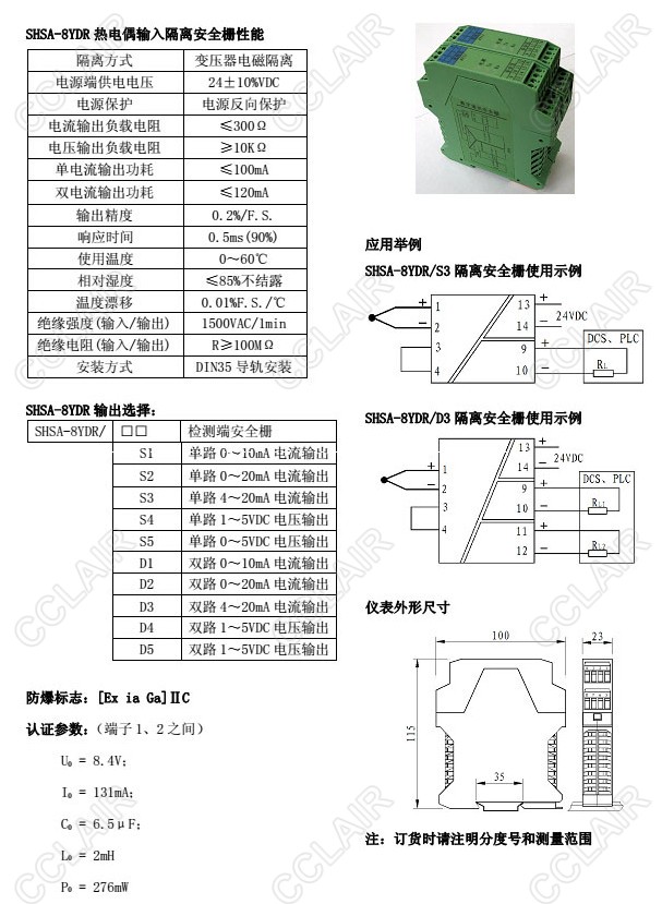 SHSA-8YDR/S1,SHSA-8YDR/S3,SHSA-8YDR/D1,SHSA-8YDR/D4,SHSA-8YDR,熱電偶輸入隔離安全柵