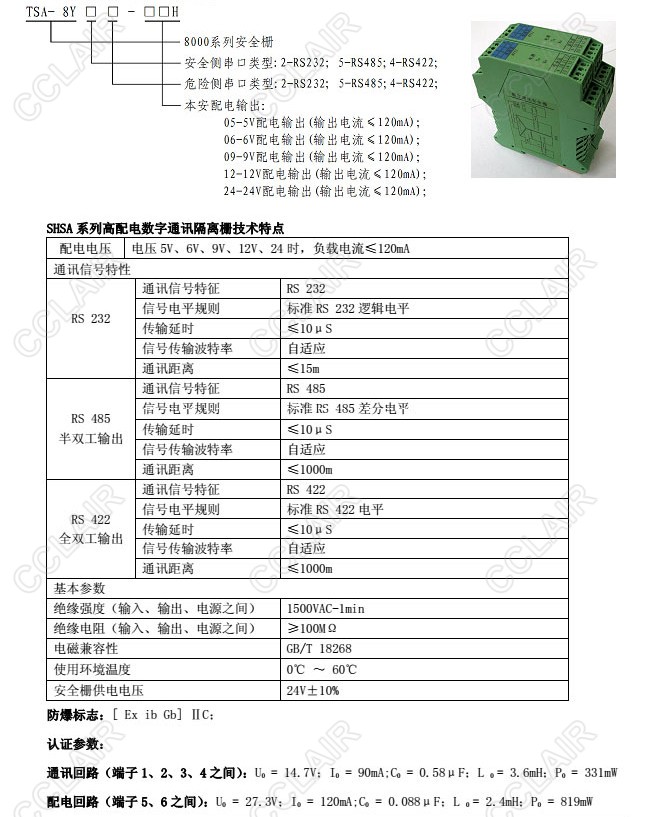 TSA-8Y22-05H,TSA-8Y25-06H,TSA-8Y52-09H,TSA-8Y42-12H,TSA-8Y,SHSA高配電數(shù)字通訊隔離安全柵