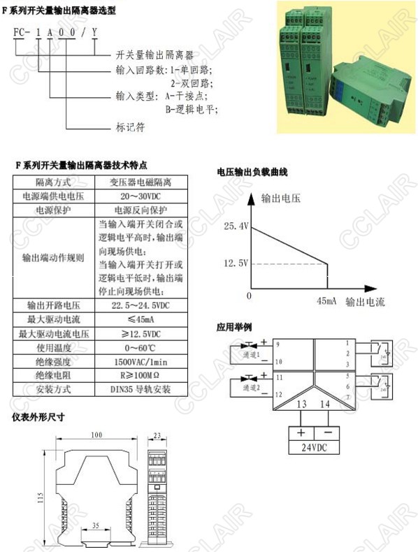 FC-1A00/Y,FC-1B00/Y,FC-2A00/Y,FC-2B00/Y,開關量輸出隔離器