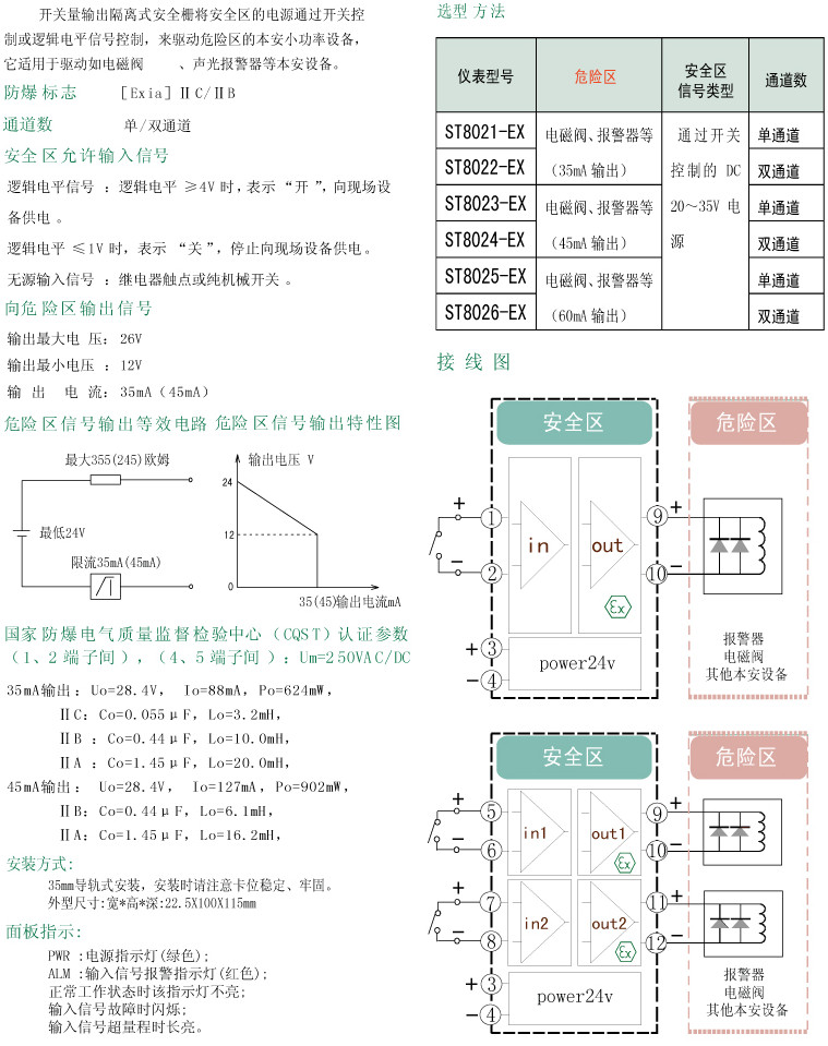 ST8021-EX,ST8022-EX,ST8023-EX,ST8024-EX,ST8025-EX,ST8026-EX,ST,開關(guān)量入操作端隔離安全柵