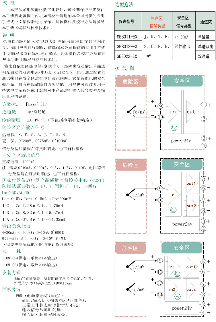 SE8011-EX,SE8012-EX,SE8022-EX,SE,熱電偶入檢測(cè)端隔離安全柵