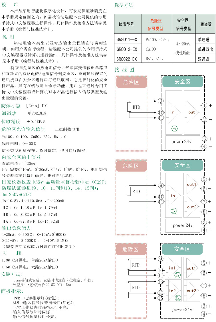 SR8011-EX,SR8012-EX,SR8022-EX,SR,熱電阻入檢測(cè)端隔離安全柵