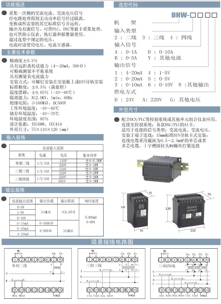 DHW-2A1D,DHW-3A2G,DHW-3D5A,DHW-4A3G,DHW-4Y8G,DHW-2,DHW-3,DHW-4,DHW,三相無功率變送器