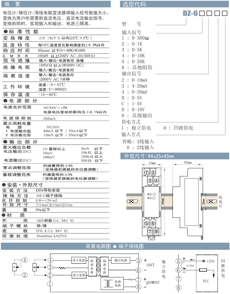 DZ-6,滑線(xiàn)電阻隔離變送器