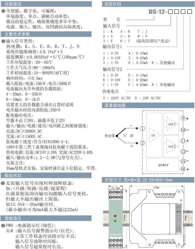 DS-12-11A,DS-12-14B,DS-12-18C,DS-12-24D,DS-12-52F,DS-12-75B,DS-12,熱電偶信號變送器