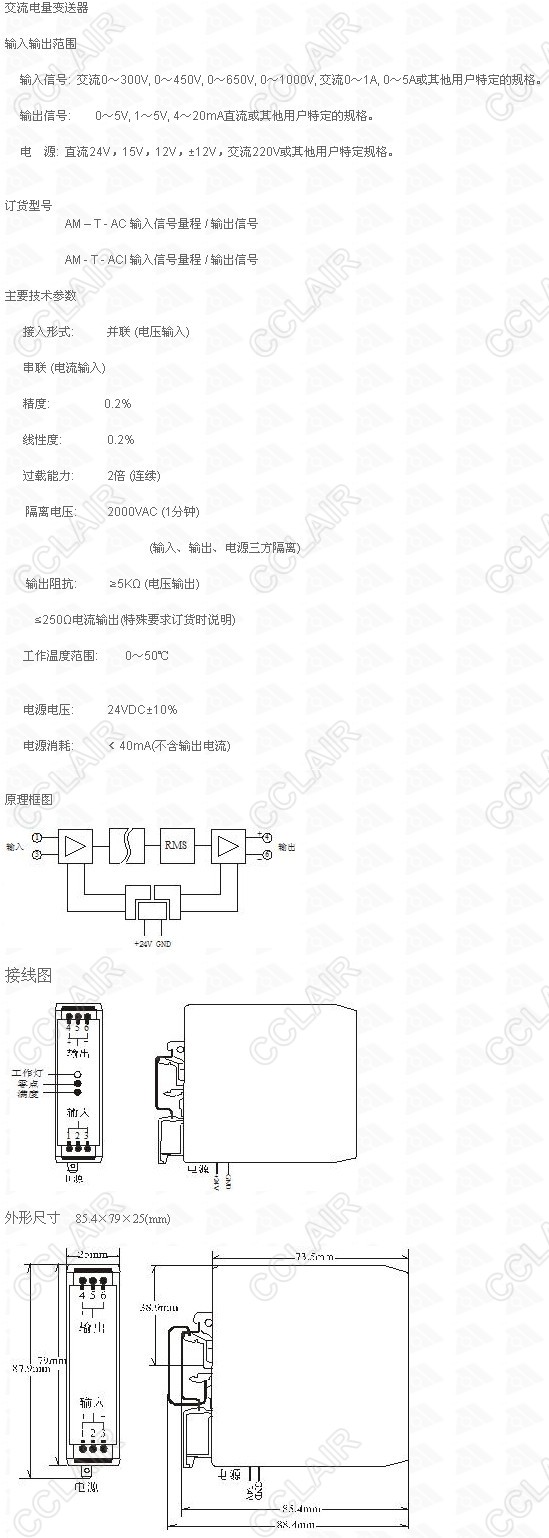 AM-T-AC300/U5,AM-T-AC300/I4,AM-T-AC450/U5,AM-T-AC450/I4,交流電量變送器