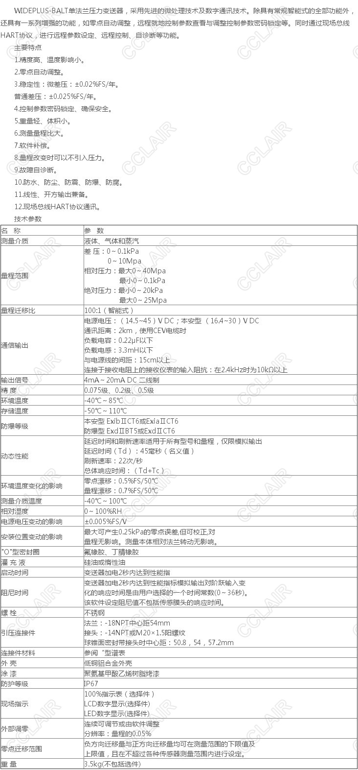 WIDEPLUS-BALT,單法蘭壓力變送器