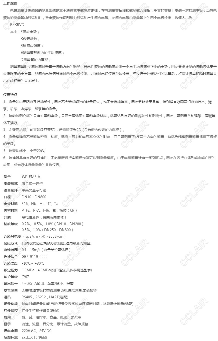 WP-EMF-A,法蘭式一體型電磁流量計(jì)