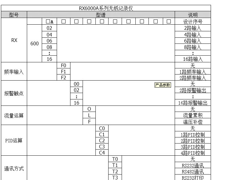 例如:RX6007A-FO-02-L1-T2-A0-P1-1-0 表示