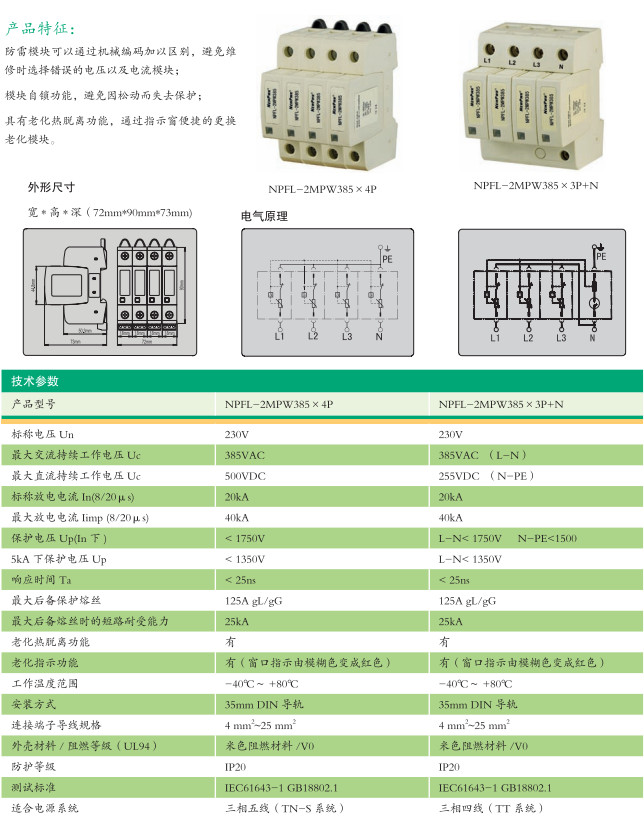 NPFL-2MPW385×4P,NPFL-2MPW385×3P+N,NPFL-2MPW385×3P,三相交流電源系統(tǒng)浪涌保護(hù)器(40KA)