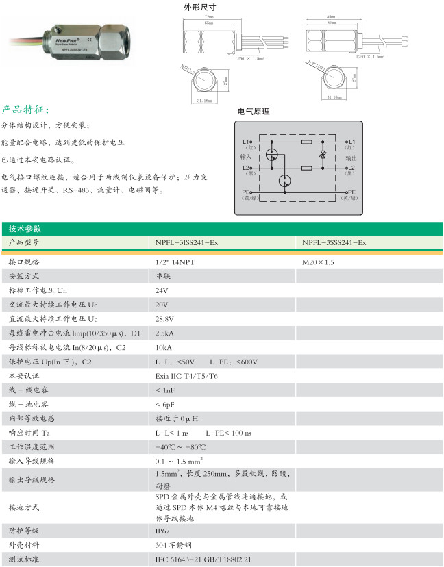 NPFL-3SSS241-Ex,NPFL-3ISS241-Ex,現(xiàn)場安裝型浪涌保護器(串聯(lián))