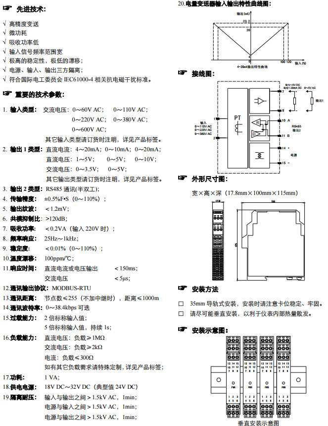 NPDL-0011111,C系列直流供電單相交流電壓變送器