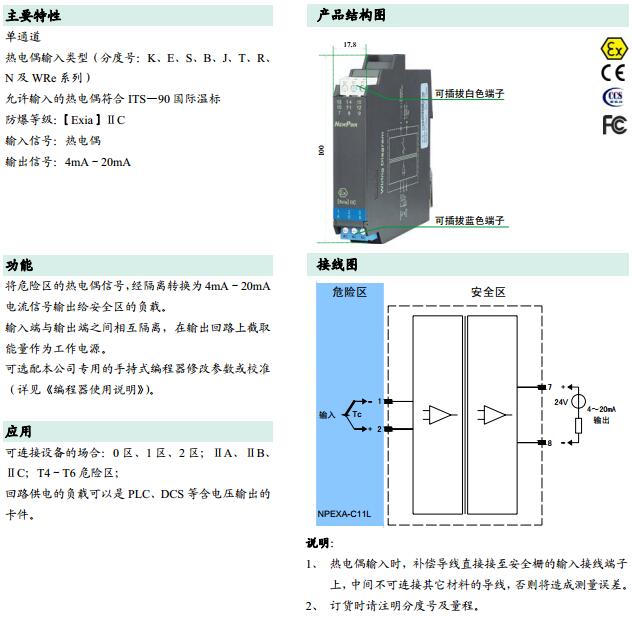 NPEXA-C11L,輸出回路供電隔離式安全柵