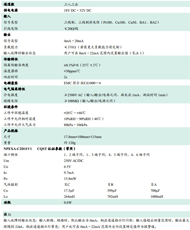 NPEXA-C2D11,檢測端隔離式安全柵