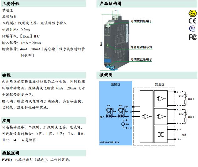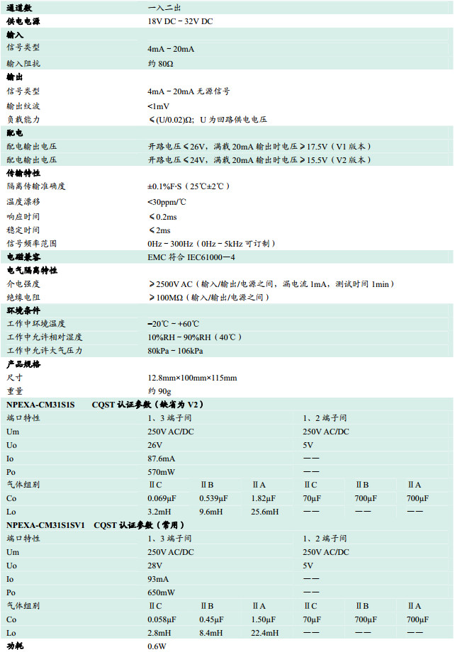 NPEXA-CM31S1S,NPEXA-CM31S1SV1,檢測(cè)端隔離式安全柵