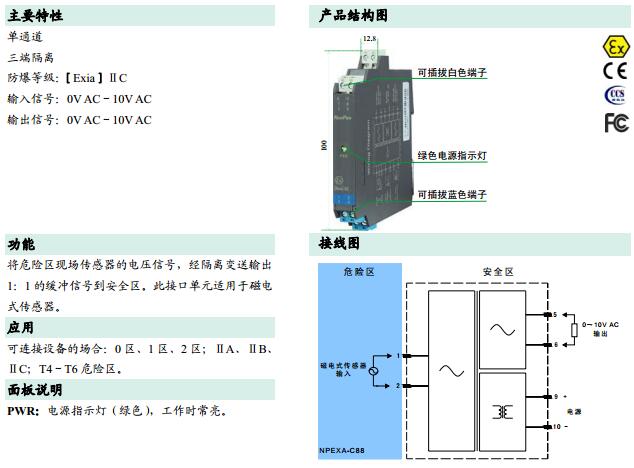 NPEXA-C88,檢測端隔離式安全柵