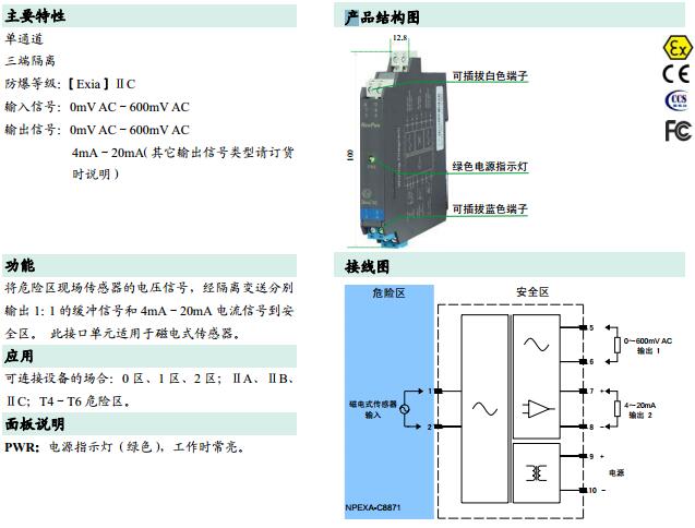 NPEXA-C8871,檢測端隔離式安全柵