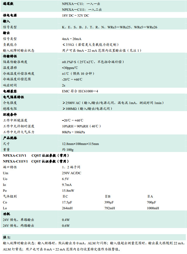 NPEXA-C11,NPEXA-C111,檢測(cè)端隔離式安全柵