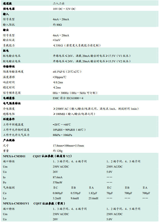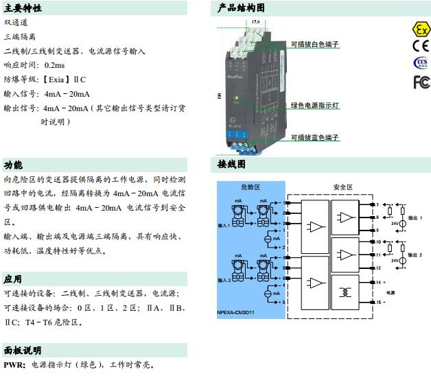 NPEXA-CM3D11,NPEXA-CM3D11V1,檢測(cè)端隔離式安全柵