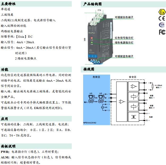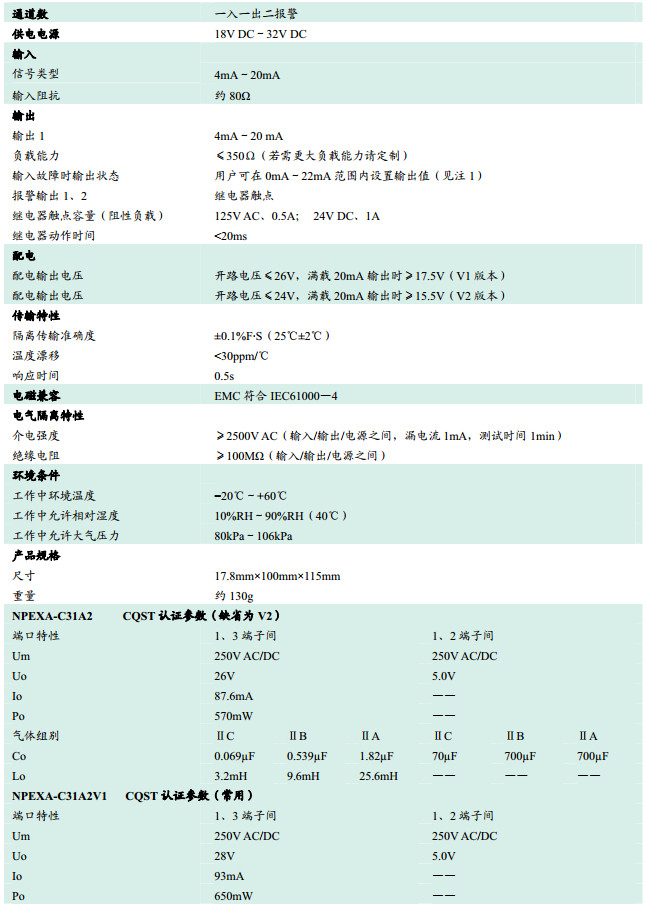 NPEXA-C31A2,NPEXA-C31A2V1,檢測端隔離式安全柵