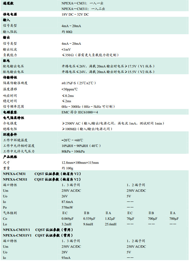 NPEXA-CM31,NPEXA-CM311,檢測端隔離式安全柵