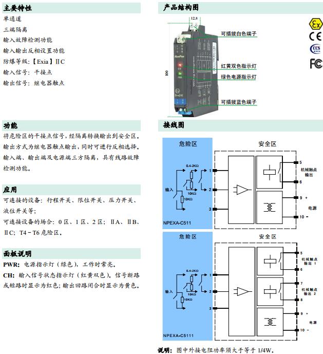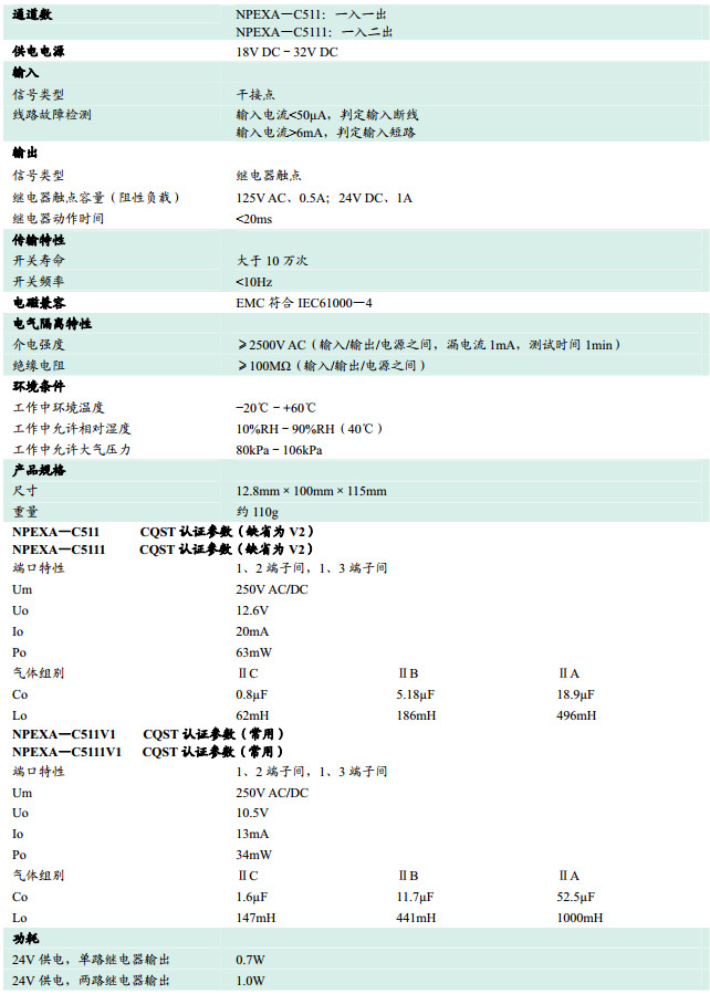 NPEXA-C511,NPEXA-C5111,檢測端隔離式安全柵